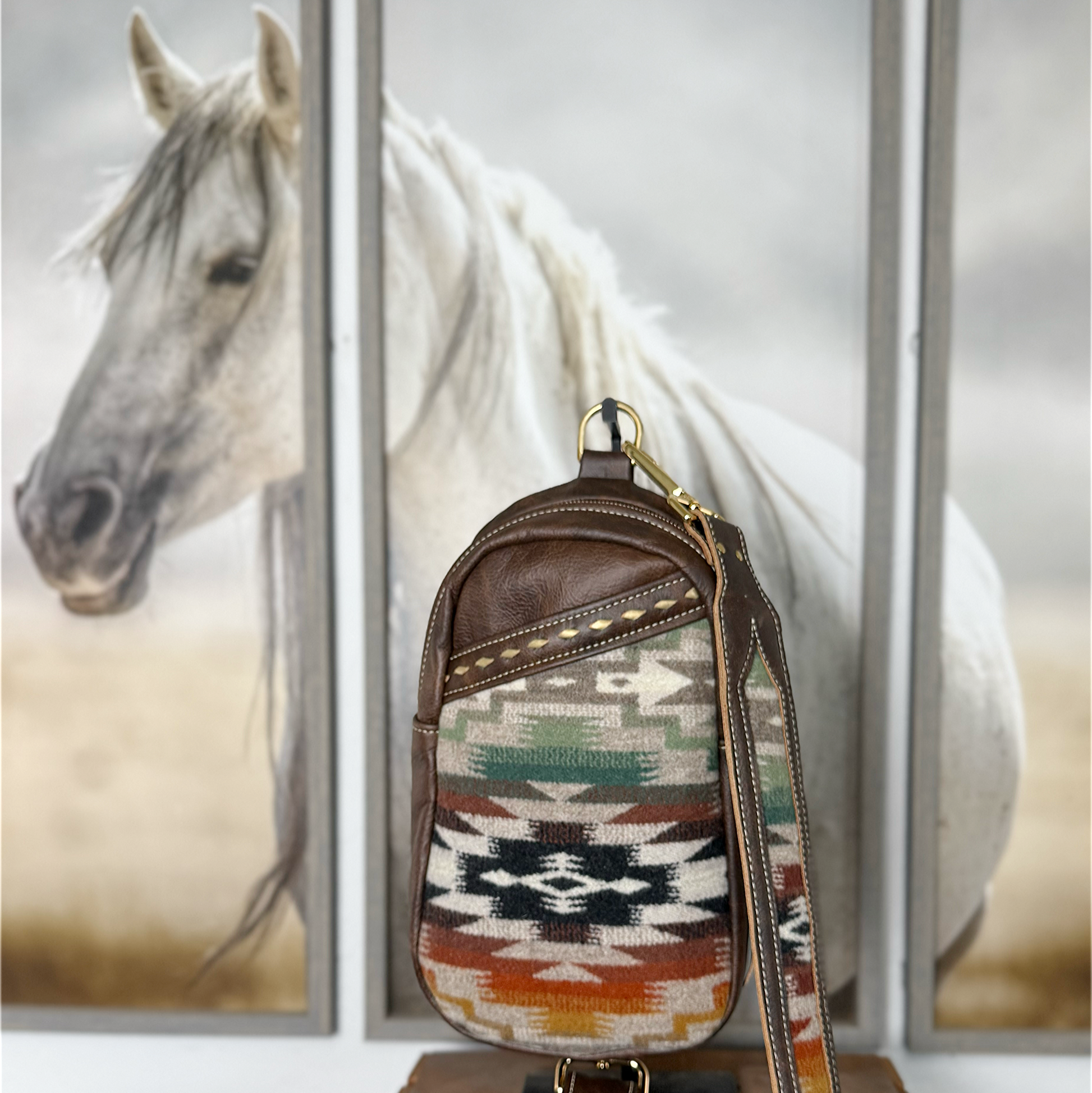 Mesilla pattern Pendleton® wool is the focal here in warm colors with an inlay strap and kangaroo lace buckstich adds the right amount of detail.