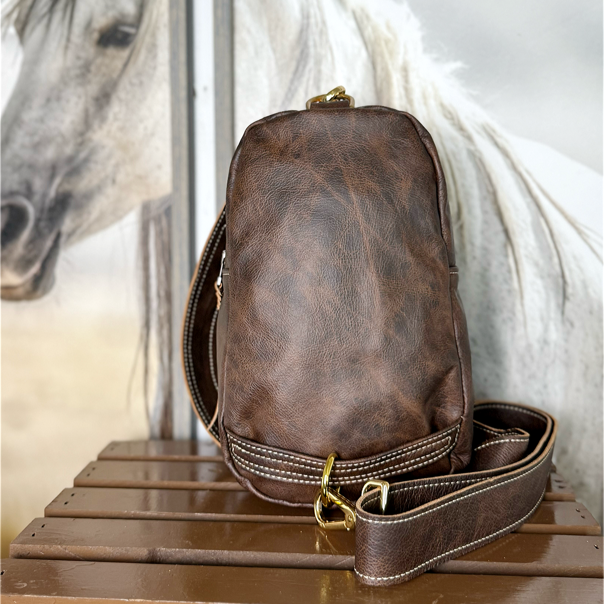 We love the leather sling bag trend for hands free carrying yet easy access to your essentials. She'll go anywhere with you- on a hike, running errands, to dinner, a baseball game- she's up for all of it worn either in the front, across your back or slung over your shoulder.