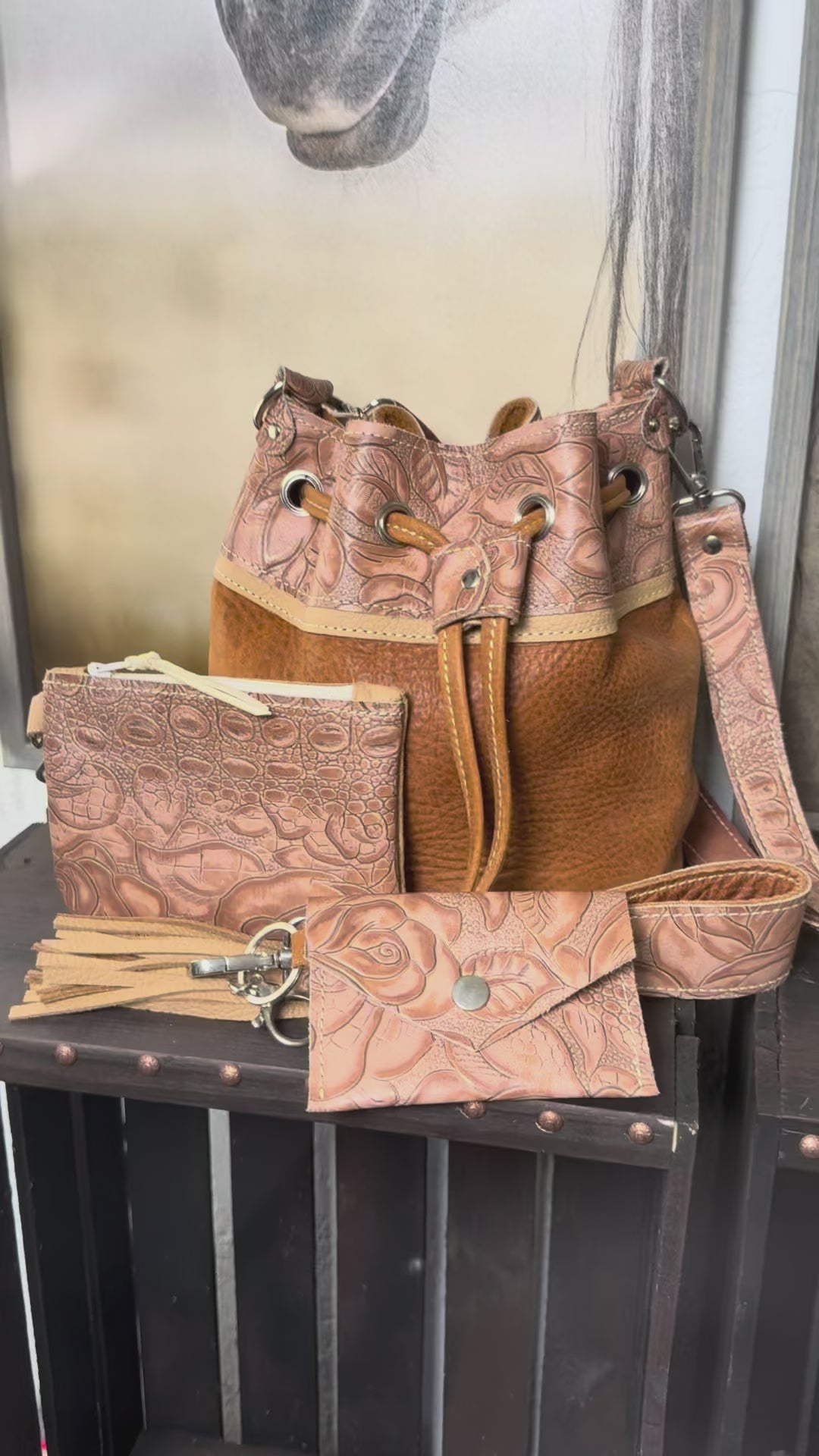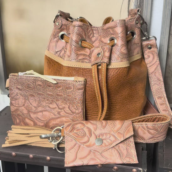 Mini Bucket Bag in Rustic Pink Rose w/Accessories