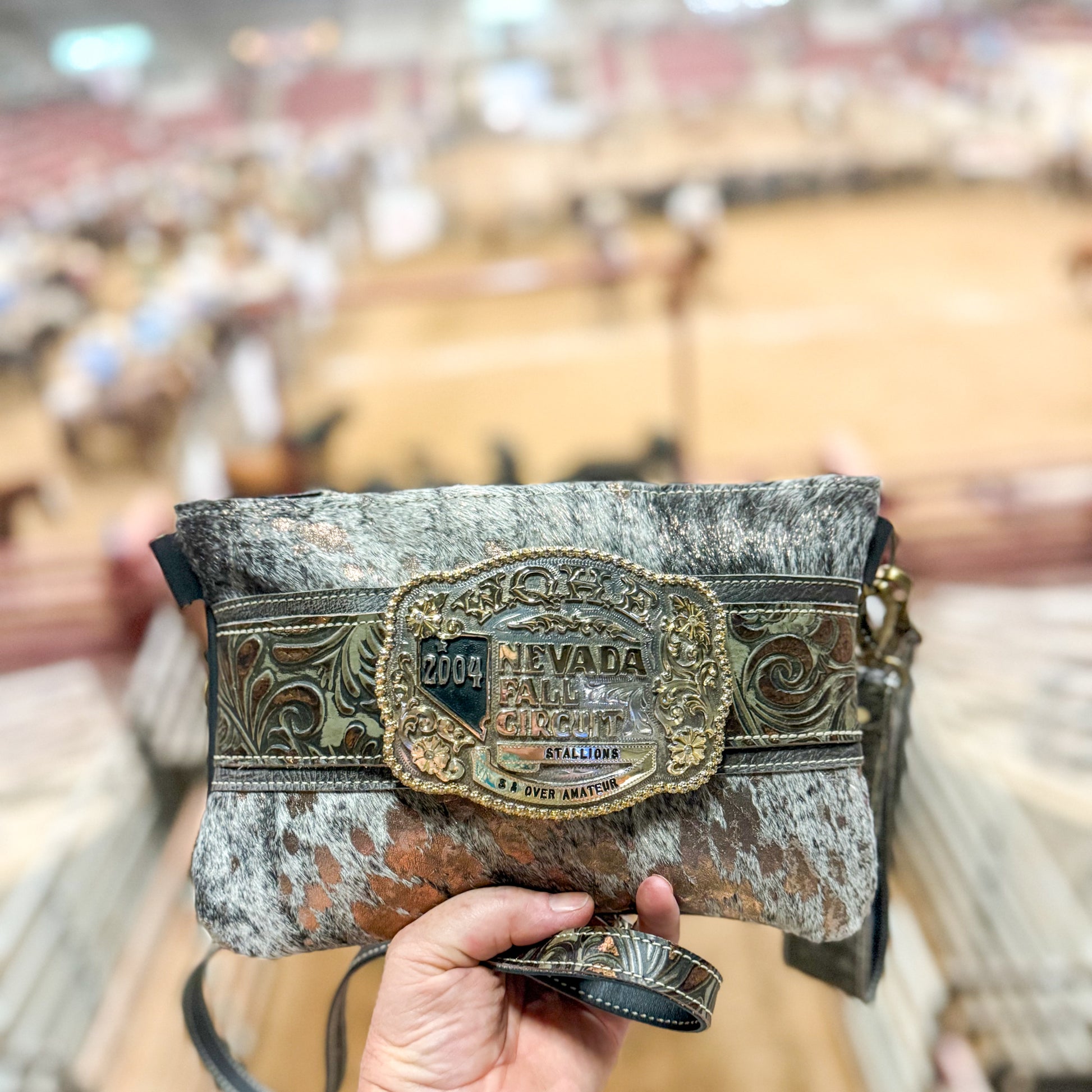 Trophy Buckle Wristlet Bag In Acid Wash Hair on Hide/Embossed Leather
